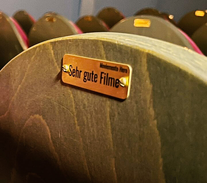 Dein Name auf Messingplakette auf einem Kinosessel Deiner Wahl.